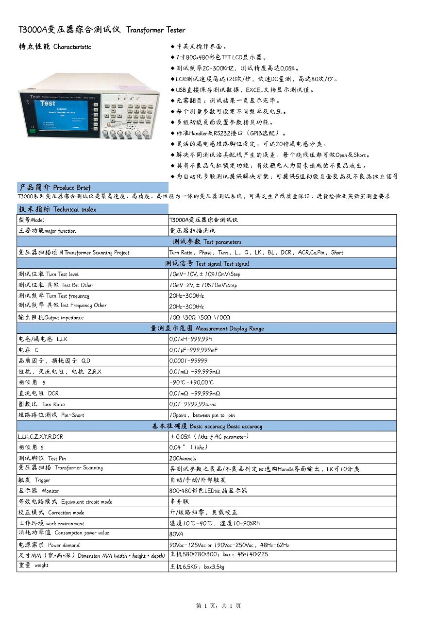 T3000A变压器综合测试仪 PDF查看